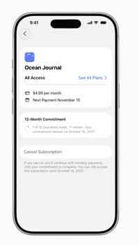 - „Heute stellen wir eine neue Zahlungsmethode für Ihre automatisch verlängerbaren Abonnements im App Store vor: Monatsabonnements mit einer Laufzeit von 12 Monaten. Mit dieser neuen Option können Sie Ihren Abonnenten günstigere Angebote machen.“