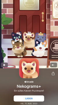 Pünktlich zum Wochenende hat Apple den ersten neuen Titel seiner Spiele-Flatrate in diesem Monat freigeschaltet. Für alle Abonnenten von Apple Arcade steht ab sofort das Katzen-Puzzle „Nekograms+“ im App Store zum Download bereit. Das Game bietet in drei Welten und 120 Leveln mehr als 15 verschiedene Katzenrassen.