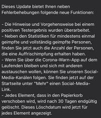 So werden zum Beispiel in den Papierkorb verschobene Dateien nun automatisch nach 30 Tagen gelöscht. Wurde ein Zertifikat unabsichtlich gelöscht, kann es von dort aus wieder hergestellt werden. In den Statistiken sieht man zudem die Zahl der mindestens einmal geimpften sowie der vollständig geimpften Personen. Außerdem haben die Entwickler die Social-Media-Links des RKI in die CWA implementiert und den Ablauf zum Vorgehen bei einem positiven Testergebnis überarbeitet.