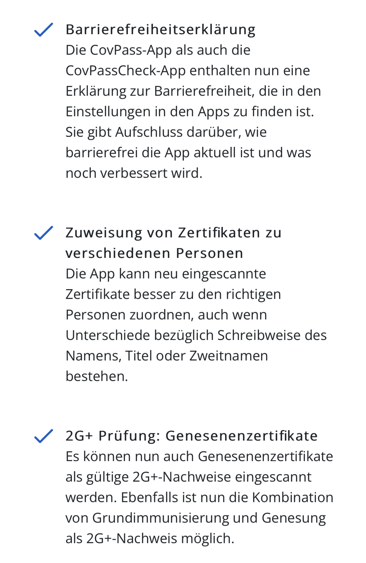Für die CovPass App des Robert Koch-Instituts ist ein Update erschienen, das einige kleine Verbesserungen an Bord hat. Die App setzt jetzt für Genesene mit Grundimmunisierung den korrekten 2G+-Status.