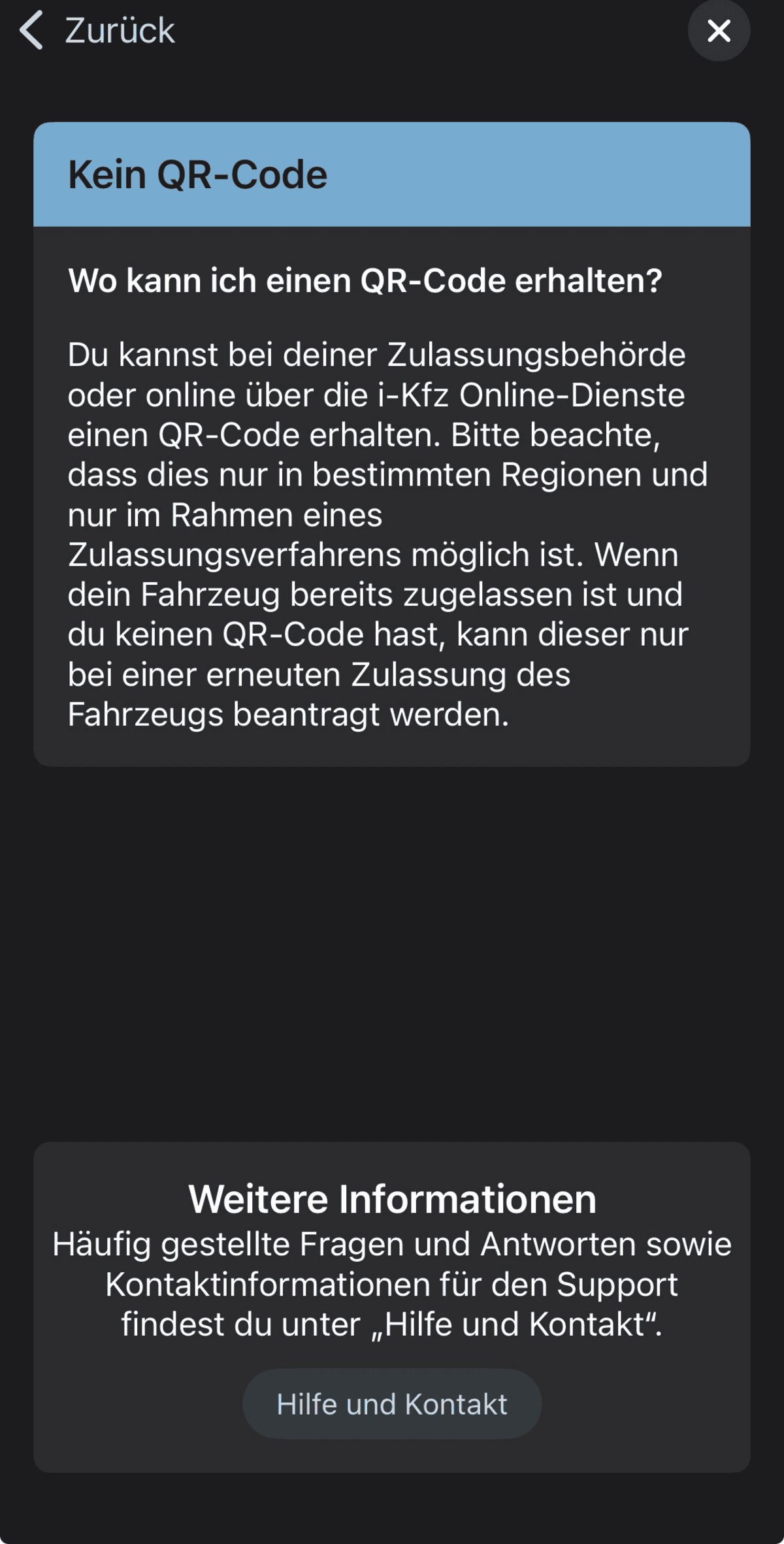 - Diesen erhält man von der Zulassungsstelle. Allerdings gibt es den Code nur im Rahmen einer Zulassung. Das heißt, wer ein Auto neu oder wieder zulässt, kann um einen QR-Code bitten. Ist das Fahrzeug bereits zugelassen, steht die Methode mit dem QR-Code leider nicht zur Wahl.