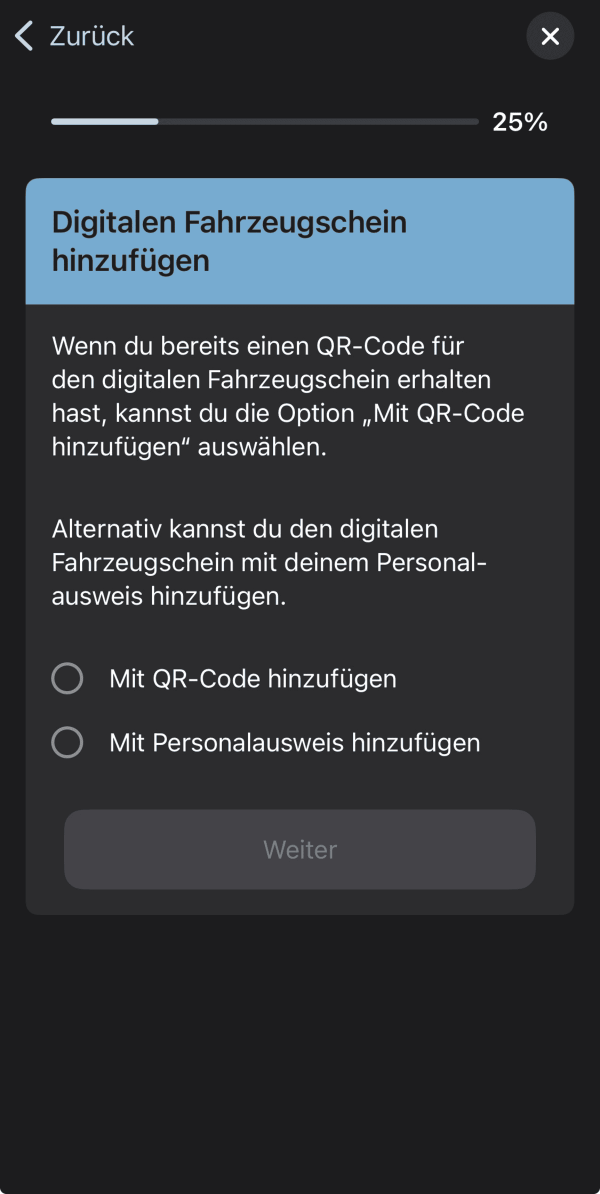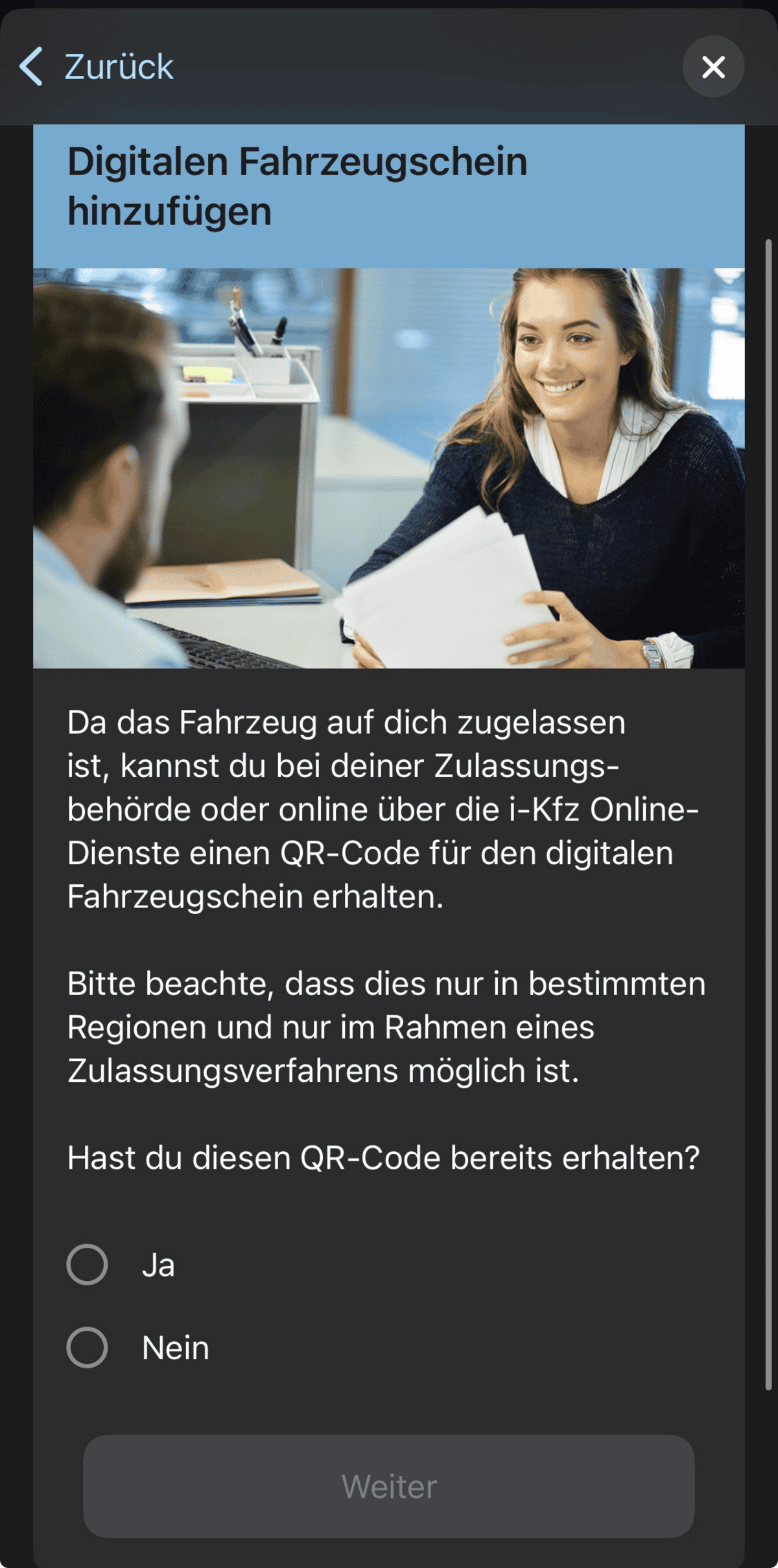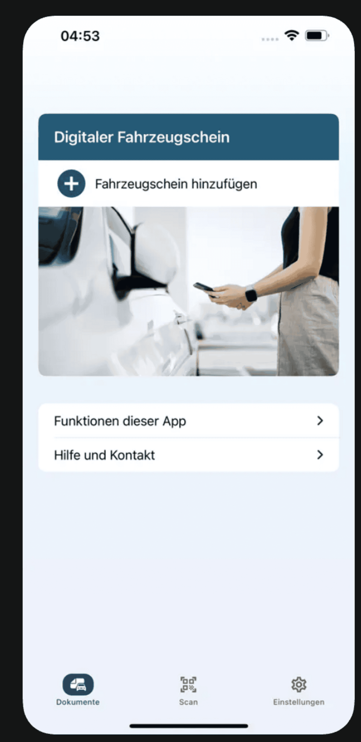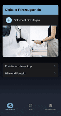 Um seinen Fahrzeugschein digital in der App i-Kfz zu hinterlegen, hat man zwei Möglichkeiten: