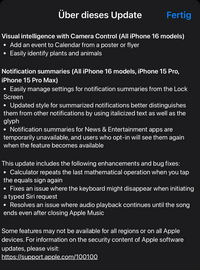 Doch zurück zu den RCs von iOS 18.3 und iPadOS 18.3, die seit gestern getestet werden können. Auf deutschen iPhones und iPads gibt es da lediglich diverse Fehlerbehebungen, u. a. in der Taschenrechner-App: