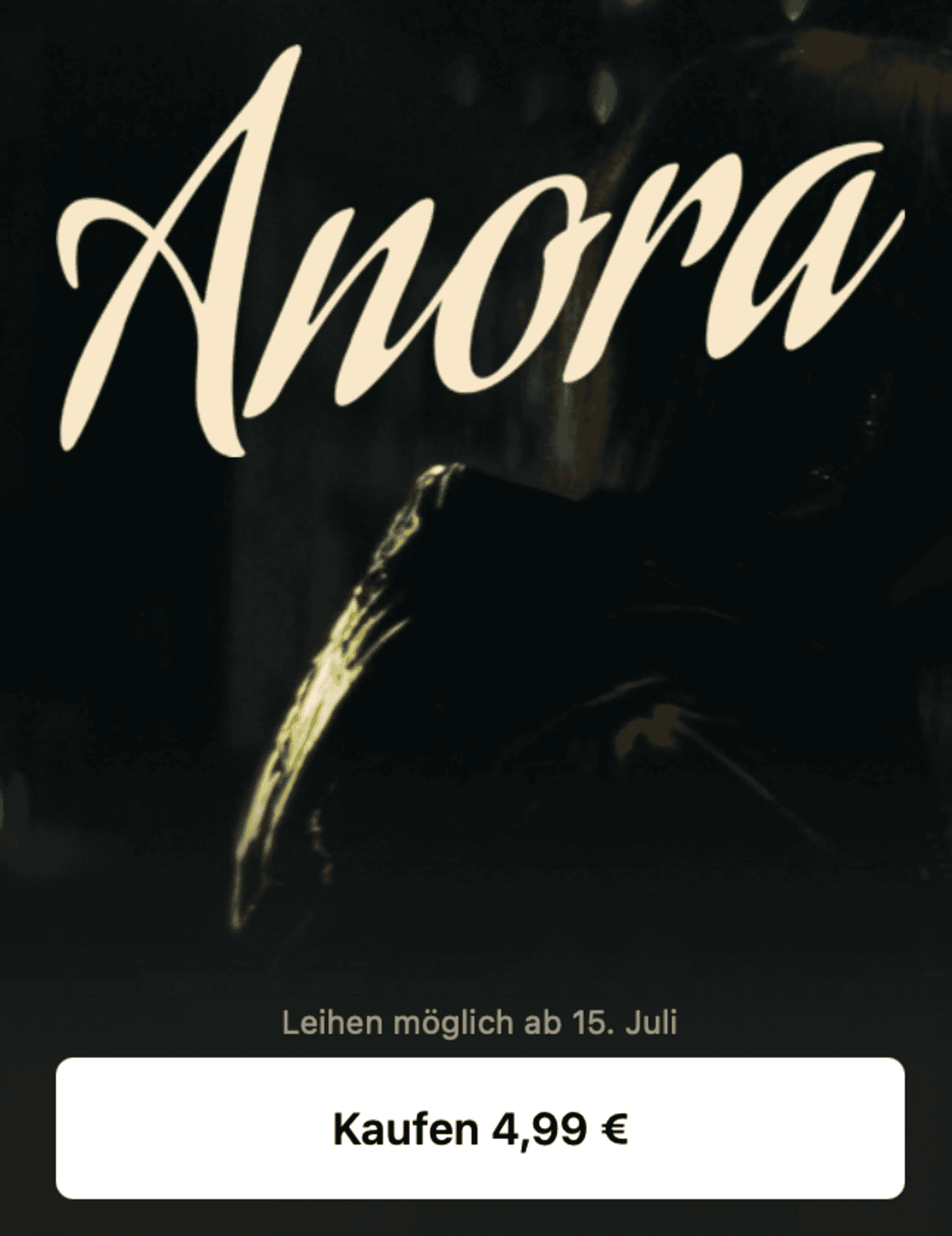 Preis: 4,99 Euro (abgelaufen, neuer Preis 11,99 Euro)Erschienen: 2024Dauer: 2 Stunden, 7 MinutenFreigabe: Ab 16 JahrenWertung bei TOMATOMETER: 15 %3. Dezember: „Anora “