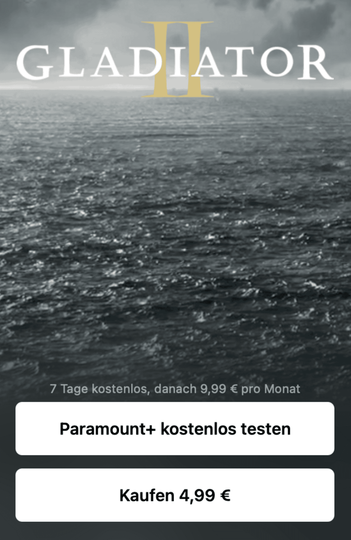 Preis: 4,99 Euro (abgelaufen, neuer Preis 9,99 Euro)Erschienen: 2025Dauer: 2 Stunden, 4 MinutenFreigabe: Ab 12 JahrenWertung bei TOMATOMETER: 88 %7. Dezember: „Gladiator II “