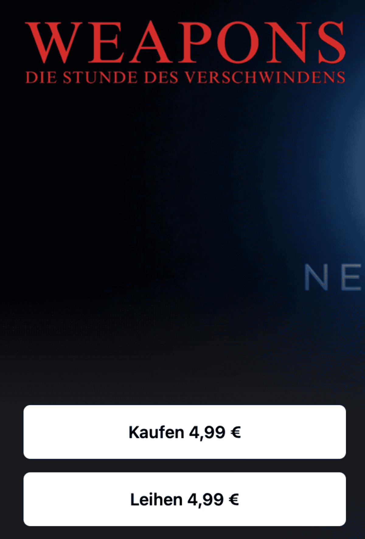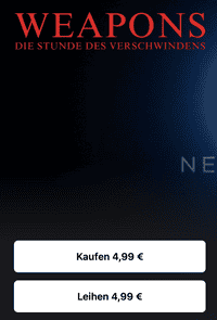 Preis: 4,99 Euro (abgelaufen neuer Preis 13,99 Euro)Erschienen: 2025Dauer: 1 Stunde, 29 MinutenFreigabe: Ab 16 JahrenWertung bei TOMATOMETER: 76 %19. Dezember: „Weapons: Die Stunde des Verschwindens “