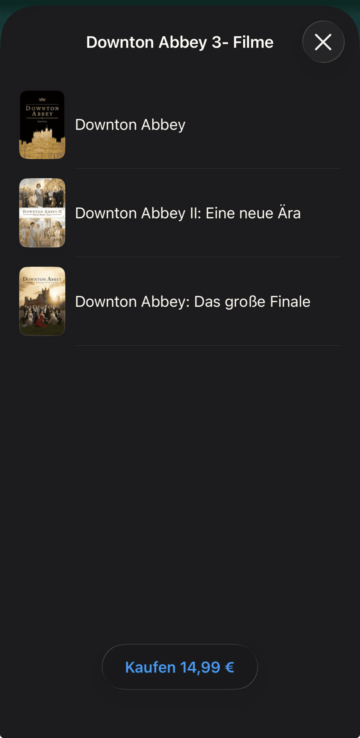 Preis: 4,99 Euro (abgelaufen, neuer Preis 13,99 Euro)Erschienen: 2025Dauer: 2 Stunden, 4 MinutenFreigabe: Ab 18 JahrenWertung bei TOMATOMETER: 75 %22. Dezember: „Downton Abbey“ 3er-Filmpaket (nur über die App)
