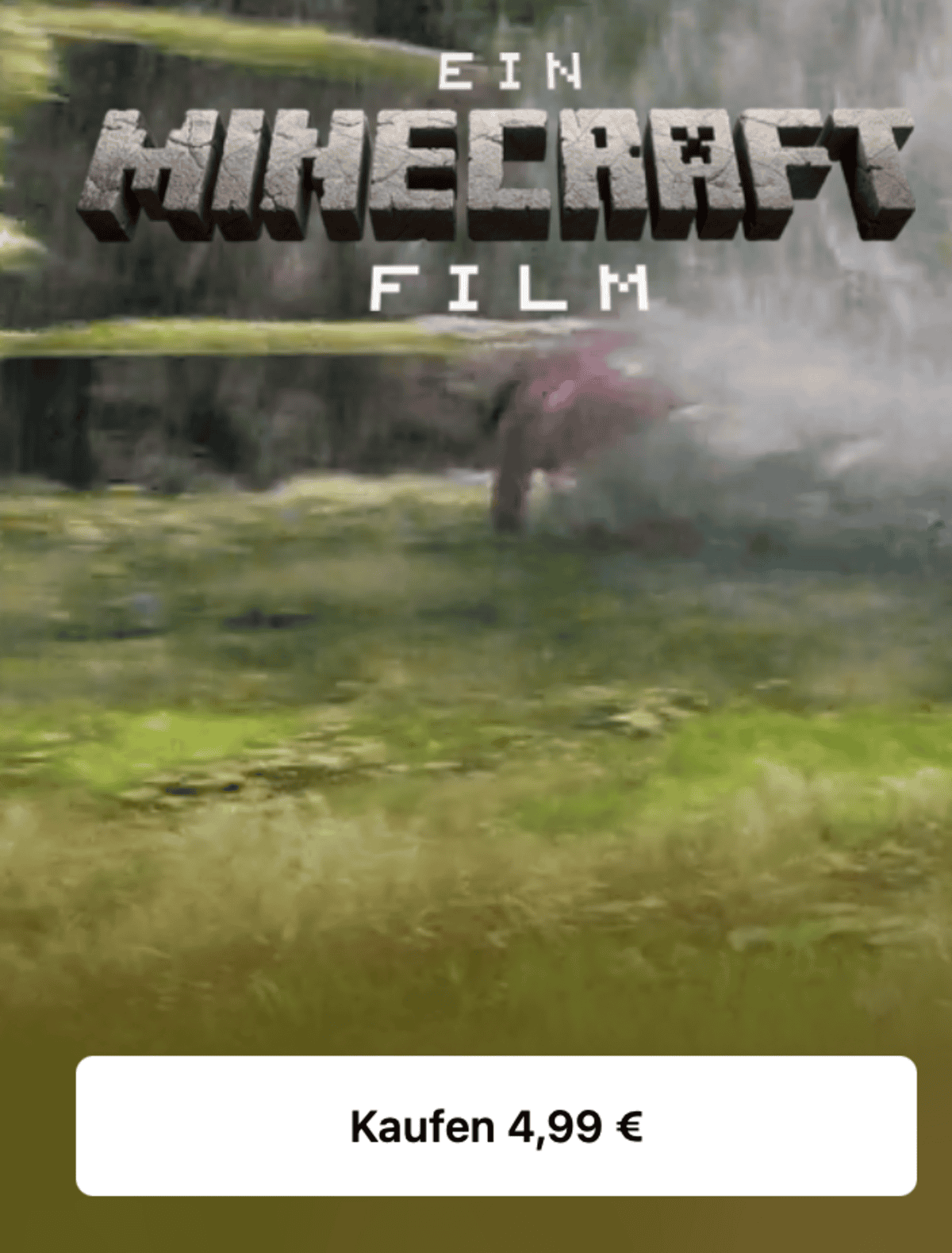 Preis: 4,99 Euro (abgelaufen, neuer Preis 16,99 Euro)Erschienen: 2025Dauer: 2 Stunden, 13 MinutenFreigabe: Ab 12 JahrenWertung bei TOMATOMETER: 50 %25. Dezember: „Ein Minecraft Film “