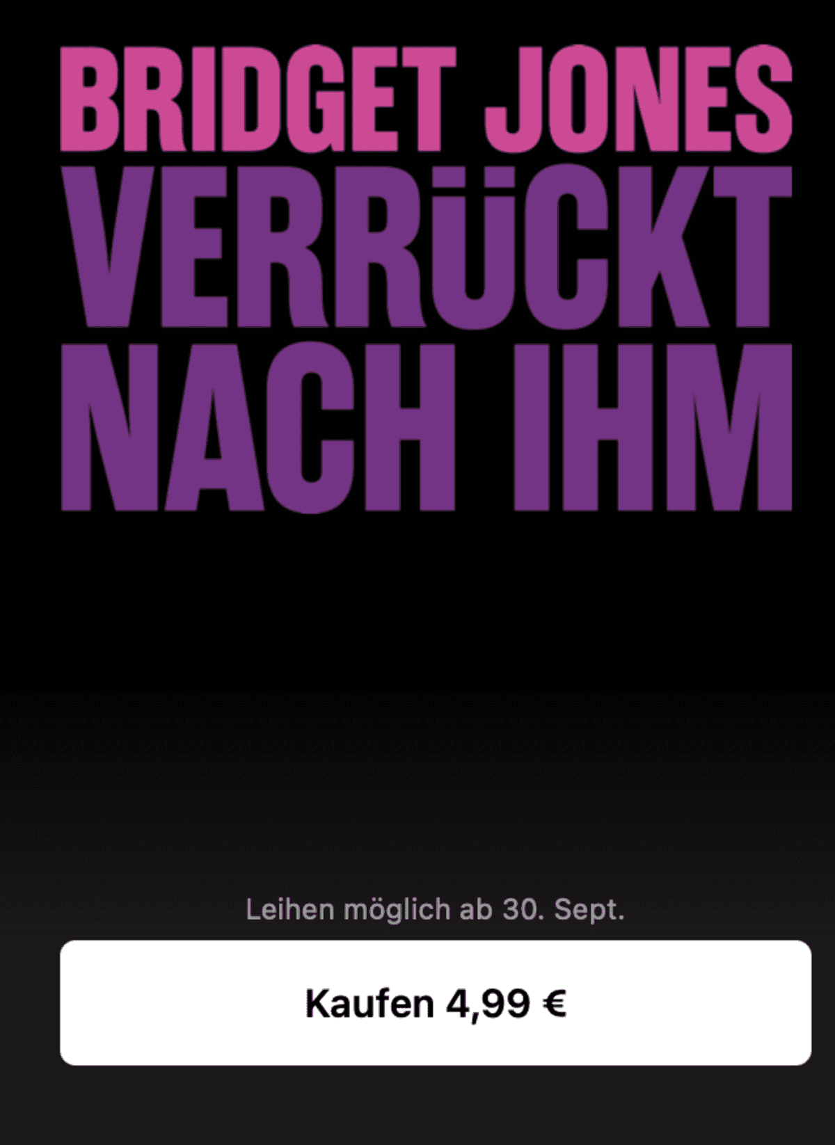 Preis: 4,99 Euro (abgelaufen, neuer Preis 7,99 Euro)Erschienen: 2024Dauer: 2 Stunden, 21 MinutenFreigabe: Ab 16 JahrenWertung bei TOMATOMETER: 89 %8. Dezember: „Bridget Jones: Verrückt nach ihm “