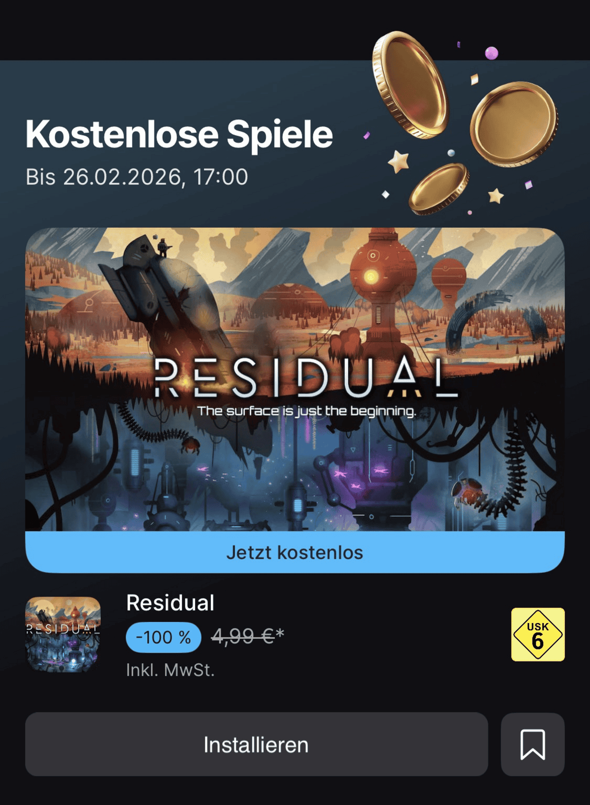 Bis zum kommenden Donnerstag um 17 Uhr könnt ihr euch wieder zwei kostenlose Spiele im Games Store von Epic sichern. Für Windows-Systeme gibt es auf der Webseite das Storytelling-Game „Return to Ash“ gratis. Der reguläre Preis liegt hier bei 5,39 Euro. Für den zweiten Titel muss man den mobilen Ableger des Game Stores aufsuchen. Dort steht die Vollversion von „Residual“ zum Download bereit, die sonst 4,99 Euro kostet.
