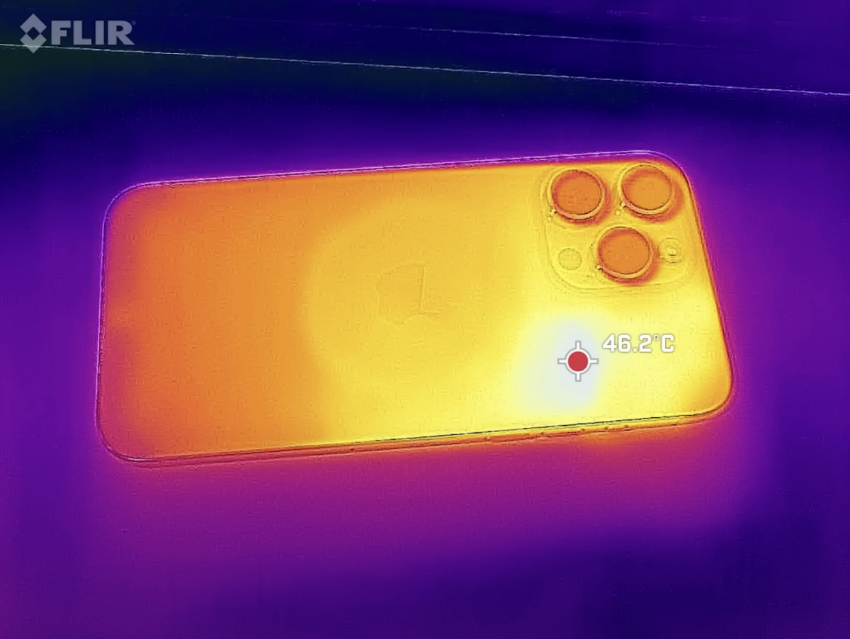 Der koreanische YouTuber BullsLab hat mehrere iPhone 15 mit einer Wärmebildkamera untersucht. In seinem Video überschreitet das Testgerät die 46-Grad-Marke. Er vergleicht das neue iPhone dabei mit anderen Telefonen, die zwar auch die 40 Grad überschreiten, aber nicht so heißt werden wie das iPhone 15.