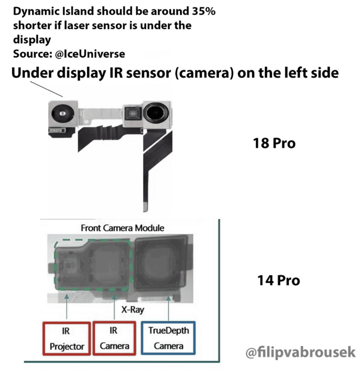 Vabroušek geht in seinem Posting noch speziell auf die Face ID-Sensoren ein. Er beschreibt genau, welche Bauteile unter dem Display verschwinden sollen. Das wäre im Moment nur die Infrarotkamera. Alle anderen Komponenten fänden weiterhin Platz im Bereich der Dynamic Island.