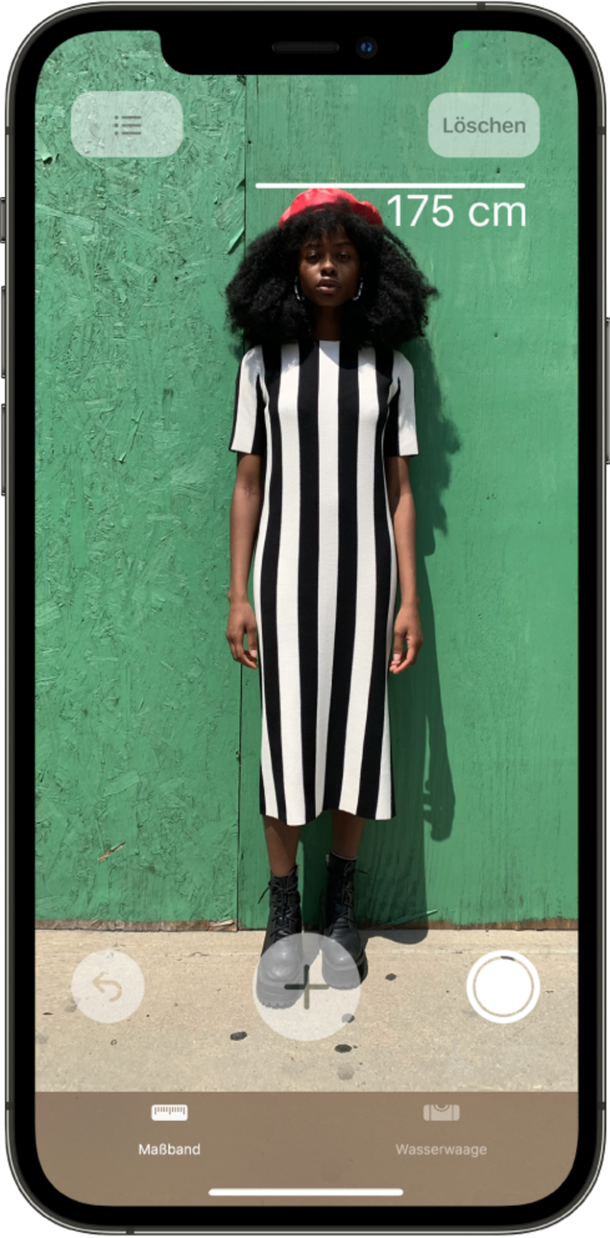 Eine solche wird im Benutzerhandbuch von iOS 14 beschrieben. Unter dem Punkt "Messen der Größe einer Person mit dem iPhone" erklärt der Hersteller, dass mit dem iPhone 12 Pro und dem iPhone 12 Pro Max die Größe von Personen ermittelt werden kann. Dies passiert über die angepasste Version der Maßband App. Diese ermöglicht mit den neuen Geräten (und auch den beiden aktuellen iPad Pro) nicht nur die Messung der Körpergröße von stehenden Personen, sondern auch von solchen, die beispielsweise auf einem Stuhl sitzen.